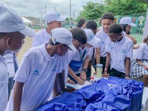 El evento de clausura se llevó a cabo en el campo de softbol de la Boquilla y contó con la presencia del gerente general de Aguas de Cartagena, John Montoya, los rectores de las instituciones educativas Skinner y Etnoeducativa de La Boquilla, representantes de la Escuela de Gobierno, el Departamento Administrativo Distrital de Salud (DADIS), Pacaribe, la Oficina de Servicios Públicos del Distrito, Miembros del grupo ambiental de la comunidad Ecopoafronorte y miembros de la Guardia Ambiental, quienes han acompañado esta iniciativa durante su implementación.