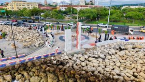 Tras la reciente entrega a la ciudadanía del también transformado Monumento a los Alcatraces, esta vez, el turno fue para el emblemático espacio construido originalmente, en 1998, para conmemorar el Año de los Océanos. El diseño fue pensado como la unión simbólica de las aguas de los cinco océanos y la ubicación de anclas de barcos, como una extensión del Museo Naval del Caribe, ubicado a pocos metros, justo enfrente del Parque de la Marina.