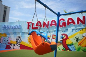 El alcalde Mayor de Cartagena, Dumek Turbay Paz, en coordinación con el Instituto Distrital de Deporte y Recreación (IDER), hizo entrega oficial este jueves del renovado Parque Flanagan, el que ha denominado como “el sitio de juegos más lindo para todos los niños de Cartagena y visitantes; así como un lugar para el encuentro familiar”, en Bocagrande.
