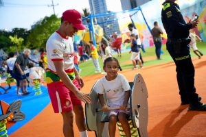 *Hoy en la entrega del renovado Parque Flanagan, un espacio moderno, seguro e inclusivo para la niñez de Cartagena, quiero expresar mi júbilo cuando nuestra administración entrega renacer en entornos abandonados. Este parque se revitaliza como un espacio de juego, aprendizaje y convivencia para los niños, las familias y toda la comunidad cartagenera. Es el parque más hermoso de la ciudad para los más pequeño”, expresó el alcalde Dumek Turbay.