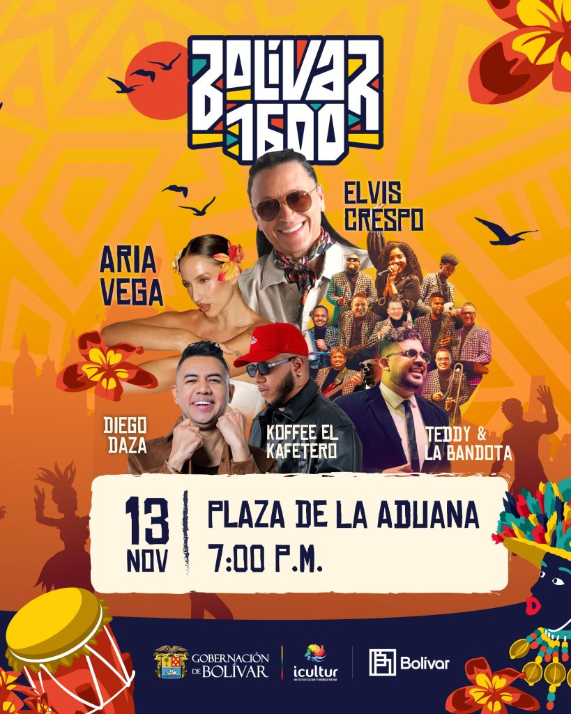 La Gobernación de Bolívar refuerza este año su compromiso con las tradicionales Fiestas de Independencia de Cartagena, sumándose con mayor fuerza y protagonismo a la celebración del legado cultural, musical y ancestral que caracteriza a esta fecha histórica. En ese marco, el departamento presenta por todo lo alto la segunda edición de Bolívar 1600, un encuentro artístico y cultural que tendrá lugar el 12 y 13 de noviembre, bajo la organización del Instituto de Cultura y Turismo de Bolívar (Icultur).