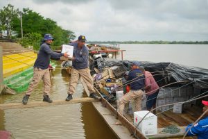 Las ayudas humanitarias también están llegando por vía fluvial a los municipios de Regencia, Villa Uribe y Montecristo, ampliando la cobertura de atención en la subregión afectada.